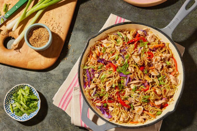 You can’t go wrong with a classic noodle stir fry for dinner. Fry up some veggies and noodles, add your favorite store-bought teriyaki sauce, and some canned salmon for a quick, crowd-pleasing meal.