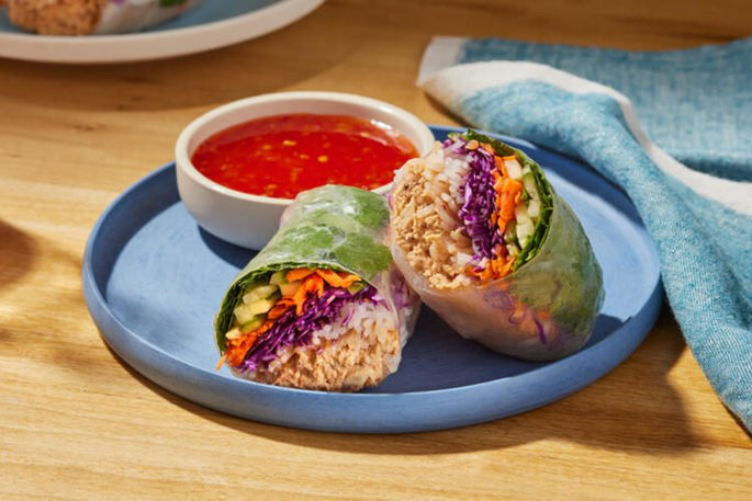 Packed with crisp veggies and with a hint of spice, these fresh rolls are a perfect way to incorporate Alaska pink salmon.